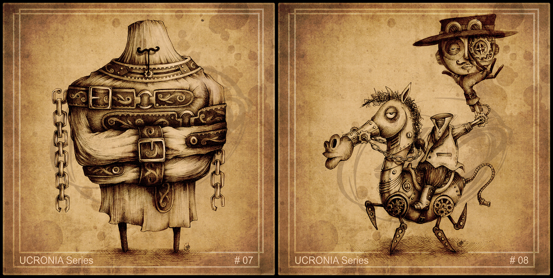 This work is an illustrated Series of 10 Characters set in an hypothetical "Alternative History" Inspired by another my Series : "PK_M Collection" Made with ballpoint pen on paper and digital retouching.