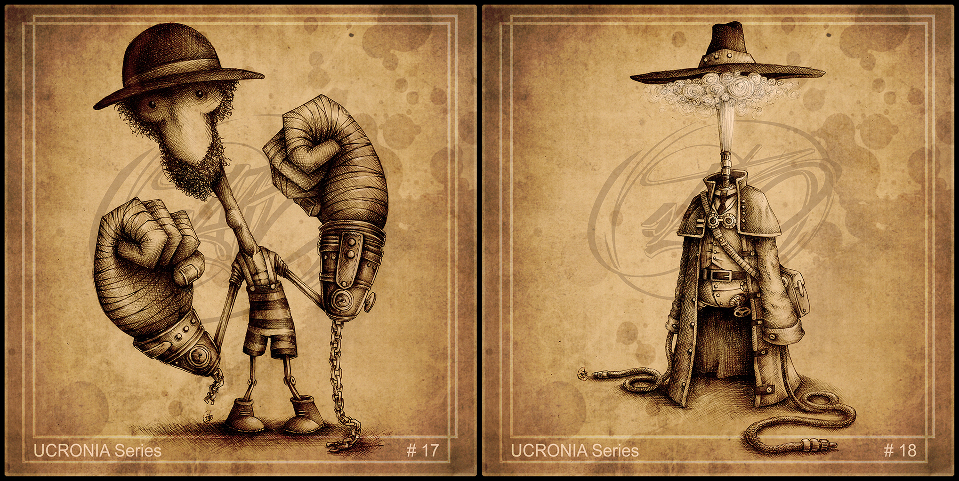 This work is an illustrated Series of 10 Characters set in an hypothetical "Alternative History" Inspired by another my Series : "PK_M Collection" Made with ballpoint pen on paper and digital retouching.